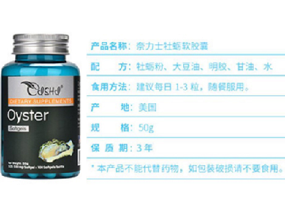 美国奈力士牡蛎胶囊进口牡蛎,每粒含350mg牡蛎粉,是男性非常好的补充体力与锌元素的好产品;