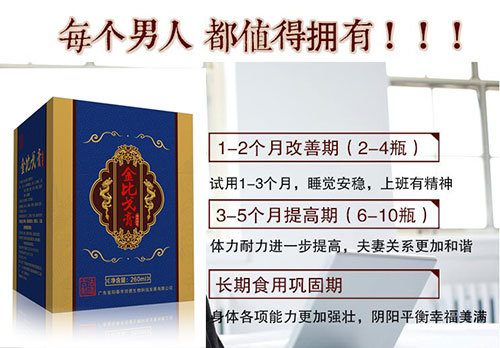 目前据不完全统计的20000名服用者,其服用1~3个月(1~3瓶),为改善期,睡觉更安稳,上班有精力。服用4~6个月(4~6瓶),为提高期,体力耐力进一步提高,夫妻关系更佳和谐。长期服用,为巩固期,身体各项能力更佳提高,阴阳平衡美满幸福,点击即可查看金比戈膏服用效果反馈!!!
