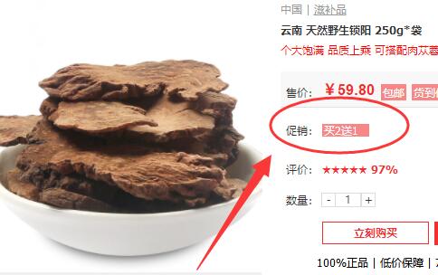 另外,周年庆典,这款云南野生无硫锁阳250g/袋,仅售59.8元,本周下单还可参与买2送1的活动,相当于每袋仅需39.8元,心动不如行动,点击进入活动页面~