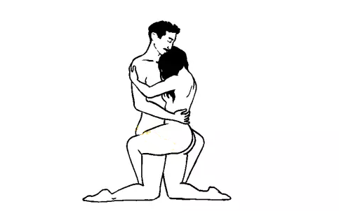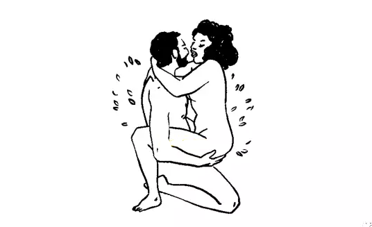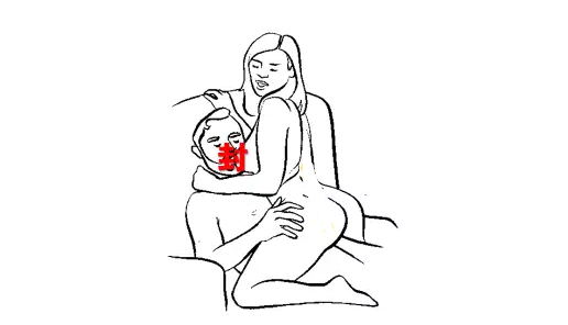 如果,男生的身高不是高女票太多,你们可以尝试一下这个姿势。首先开始于正常的“拜年跪”(等等!别磕头!),将左膝竖起,放在姑娘右侧。女生做同样的姿势,两人跪着交叠在一起。然后女生降低自己的盆骨,低到洞洞所在的位置,将丁丁滑入(身高差太多的朋友你就放弃这个姿势吧)。