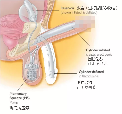 然后选择合适尺寸的假体塞进空隙,并接上泵或其他组件,泵则置于阴囊里,水囊位于耻骨后。