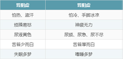 【肾阳虚和肾阴虚的区别】