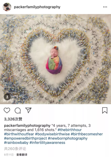 图片的配文是:四年时间、七次尝试、三次流产、打了1616针。