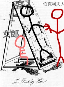 客人脱光了趴在上面的时候,梯子中会坐着一个穿着暴露的女郎,她负责在前面挑逗客人的身体,而伯克利夫人就在后面鞭打他的屁股。