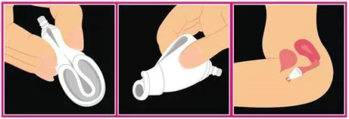 5. 当杯满需要更换时,音道肌肉以排便姿势将杯身推出,这时,杯柄会露出体外,用力下拽杯柄,将杯体拖到音道最细处。若仍无法取出,可以用一个指头将杯身压扁,这样杯子自己便会折叠起来。