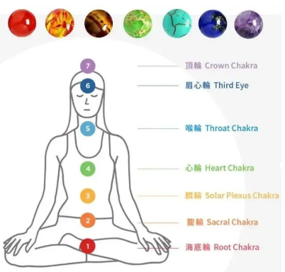 古印度认为,脉轮是人体能量的中心,人能够经由肉体上的脉轮接收和传达精神上的能量,七大脉轮依次排列在身体的中轴线上: