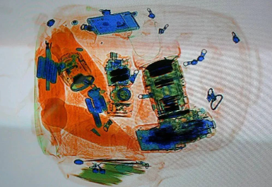 X光成像可以透过行李的外表,看到内部的形状和颜色。