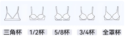 内衣的杯型也是不一样的,主要有1/2杯、3/4杯和全罩杯三大类。然后还有三角杯、5/8杯之类更细致的分类。