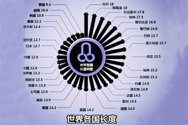 全球男性的平均勃起长度是12~16公分,我国男性是12~13公分。