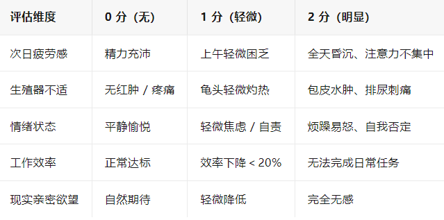 ≥5 分:需暂停自慰 1-2 周,排查是否因心理压力导致依赖。